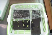 스폰지에 바질과 쑥갓 그리고 겨자를 파종했습니다.