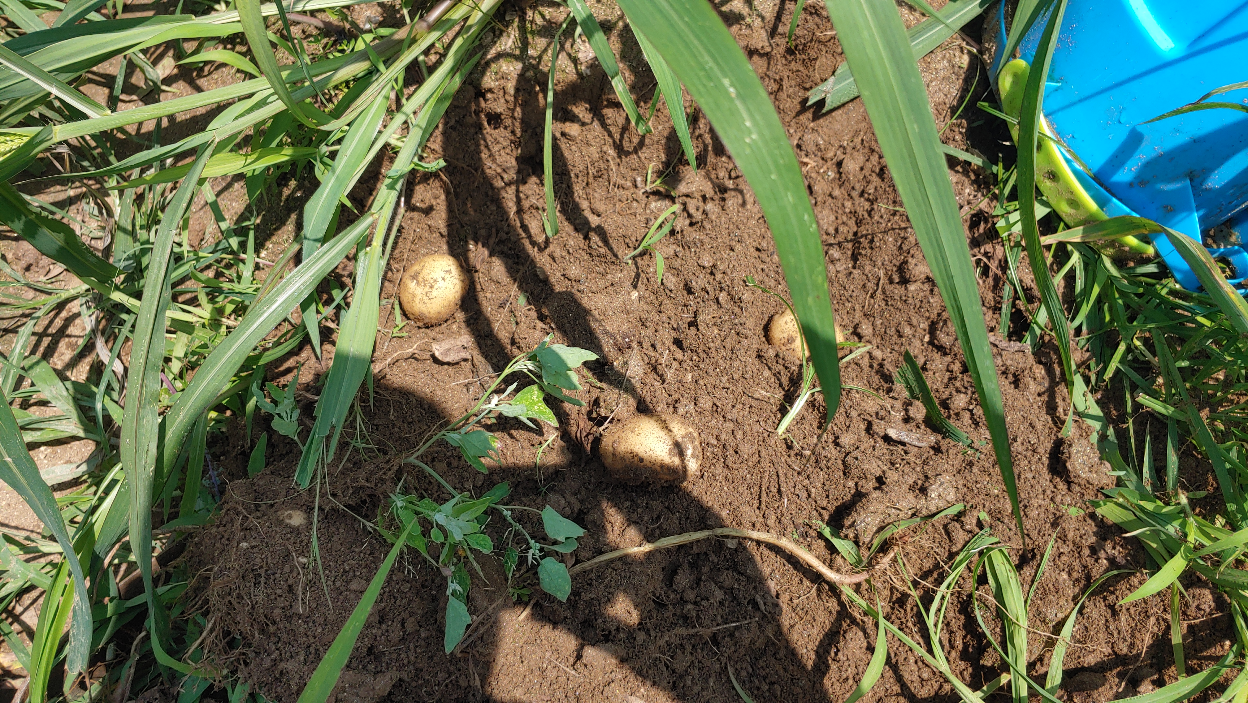목적이 감자 수확이니 우선 땅을 파본다.