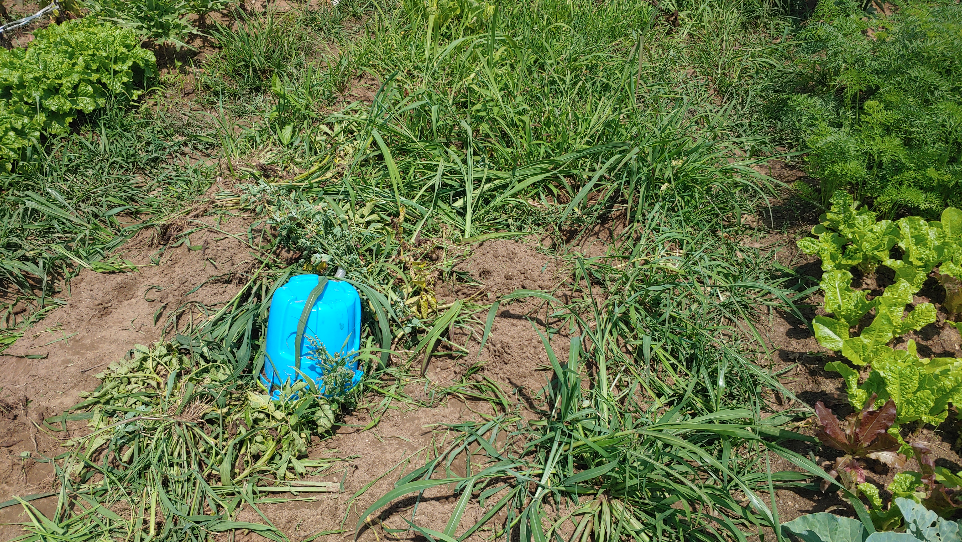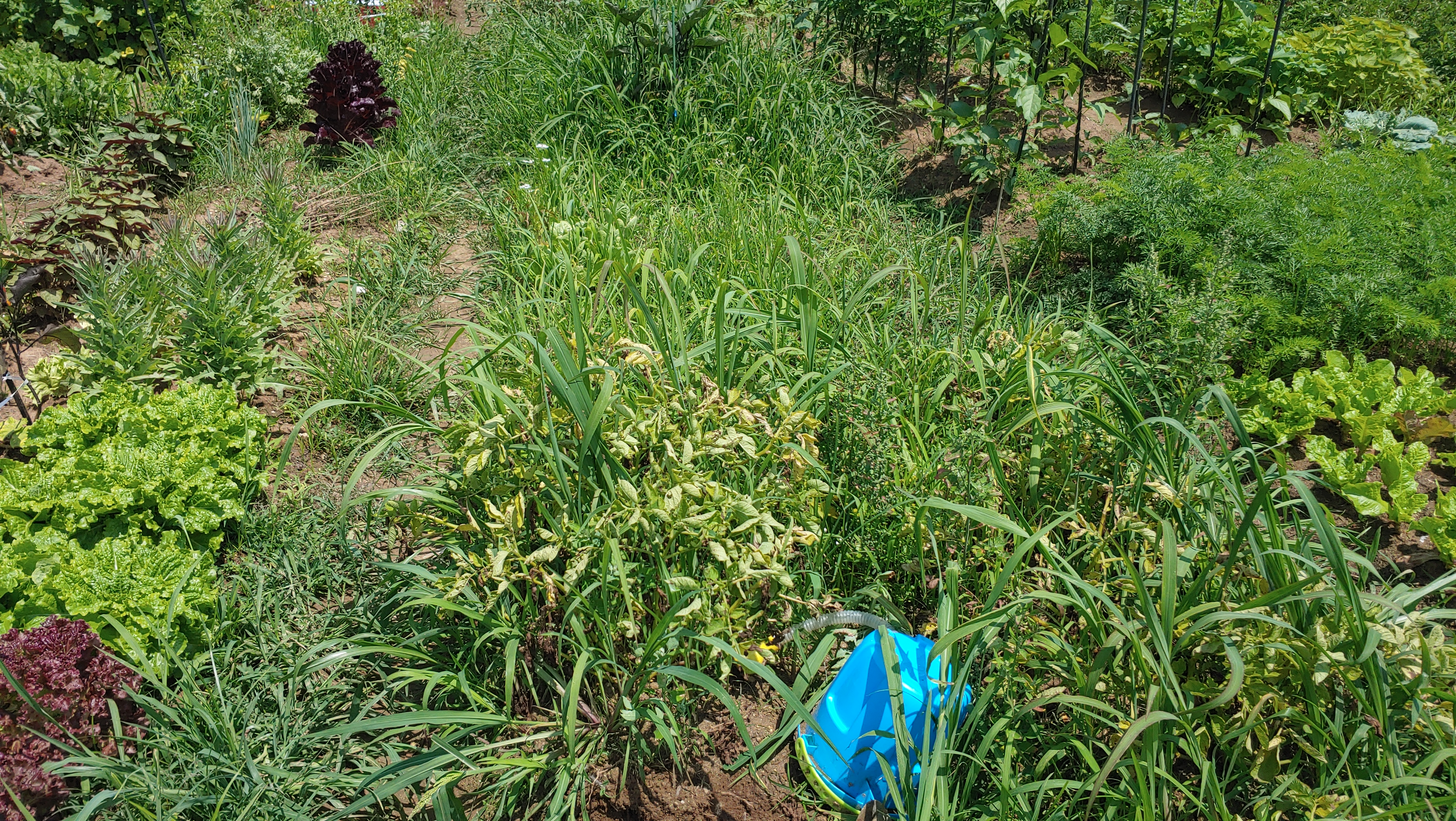감자 밭인지 풀 밭인지 구분이 되지 않는 텃밭. 몇주간 돌보지 않았더니 제초작업이 아니라 벌초를 해야한다.