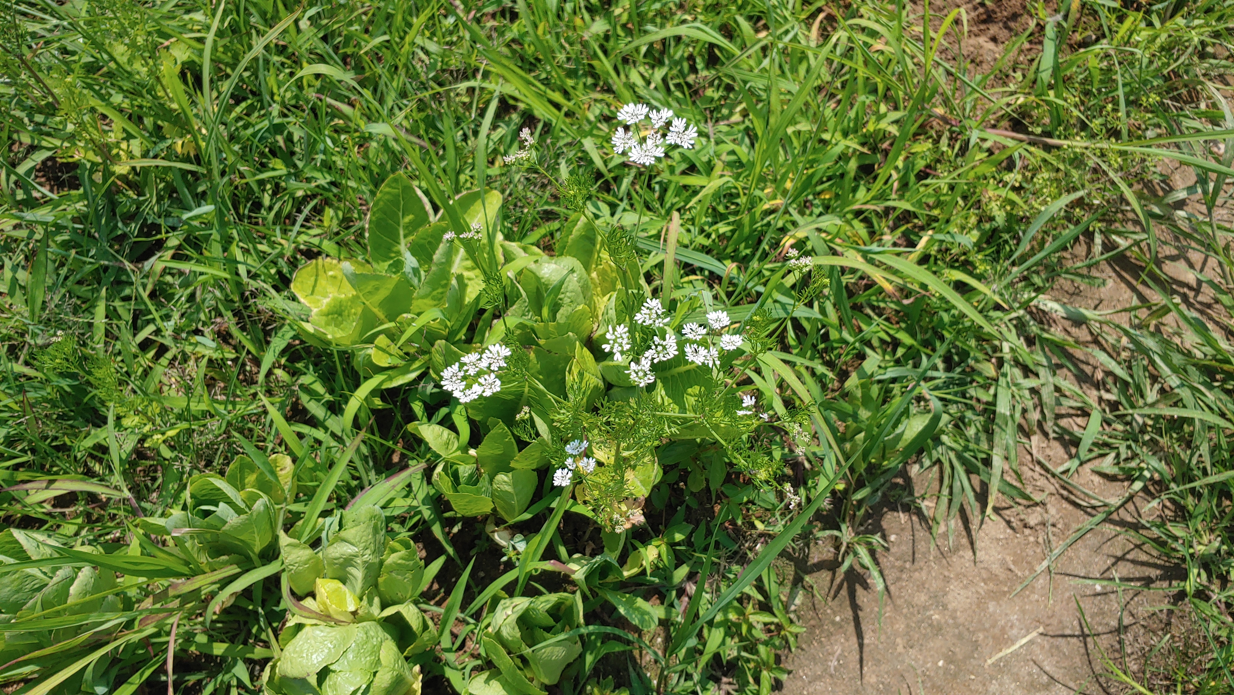 이미 수확 시기가 끝난 고수는 예쁜 꽃을 맺었다.