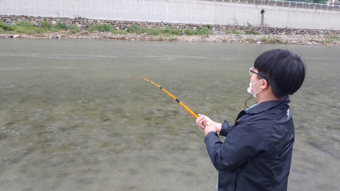 낚시를 시도합니다. 지렁이 미끼로 했는데 잘 잡히지 않습니다.