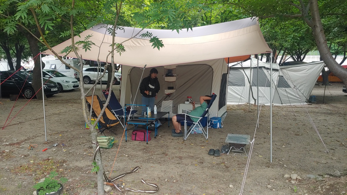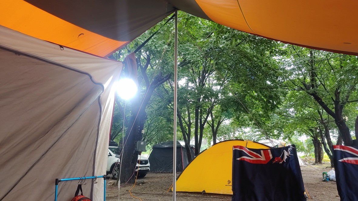 비가 온다는 소식에 얼른 타프와 이너텐트를 쳤습니다. 여름에는 이 모드가 쾌적하고 시원하더라고요.