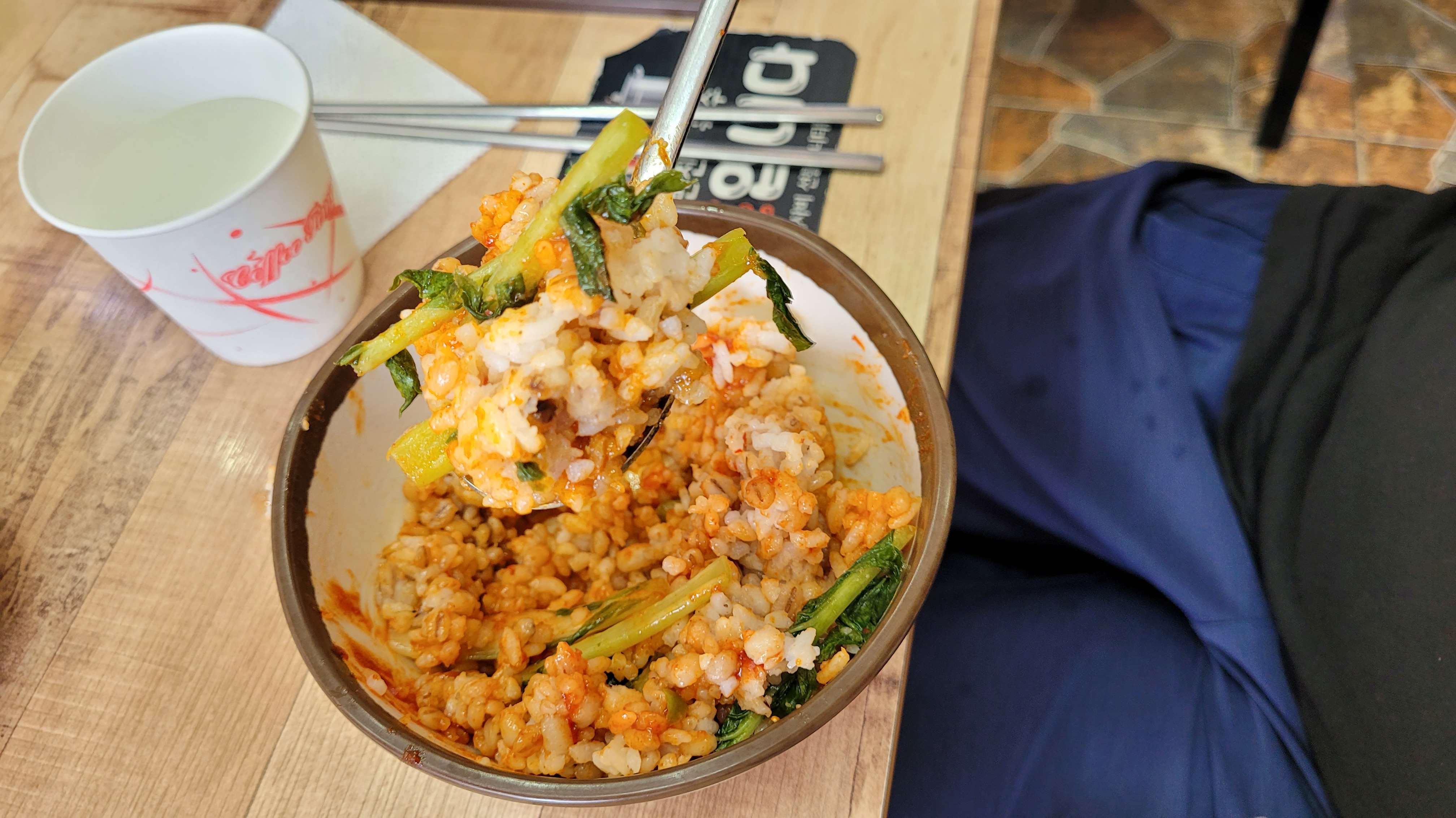 출출한 마음에 무료인 보리밥으로 비빔밥을 만든다.
