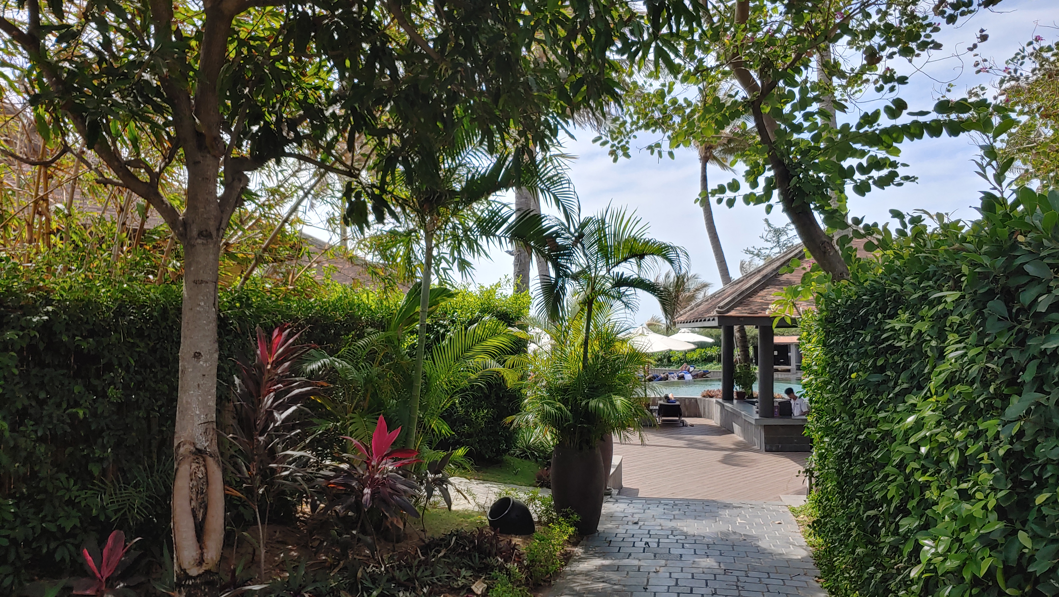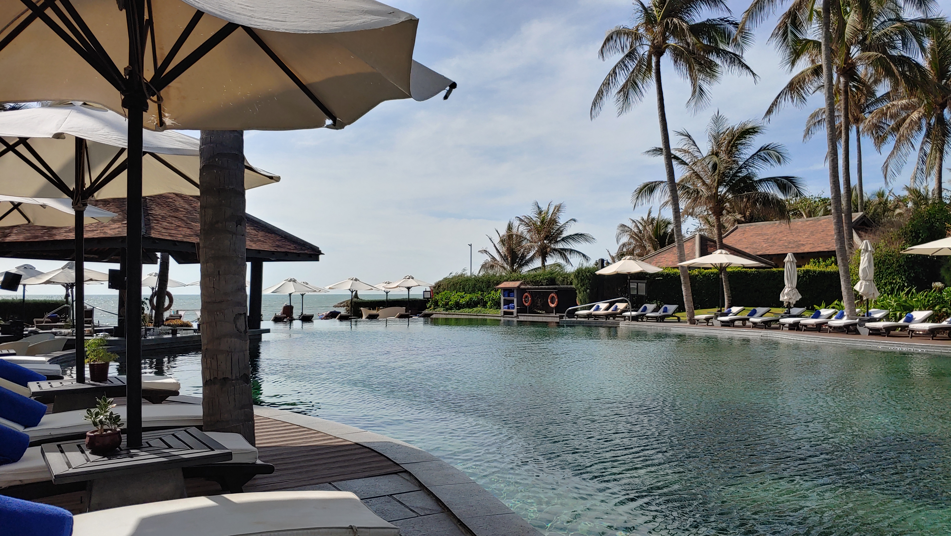 아침일찍 수영을 하기 위해 아난타라 무이네 리조트의 수영장에 나왔습니다.