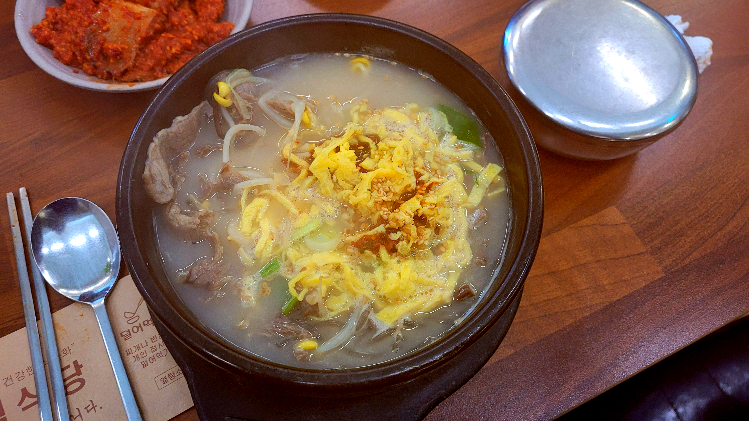 드디어 가리국밥이 나왔습니다. 계란 고명이 아낌없이 올라가 있고 고기도 넉넉합니다.
