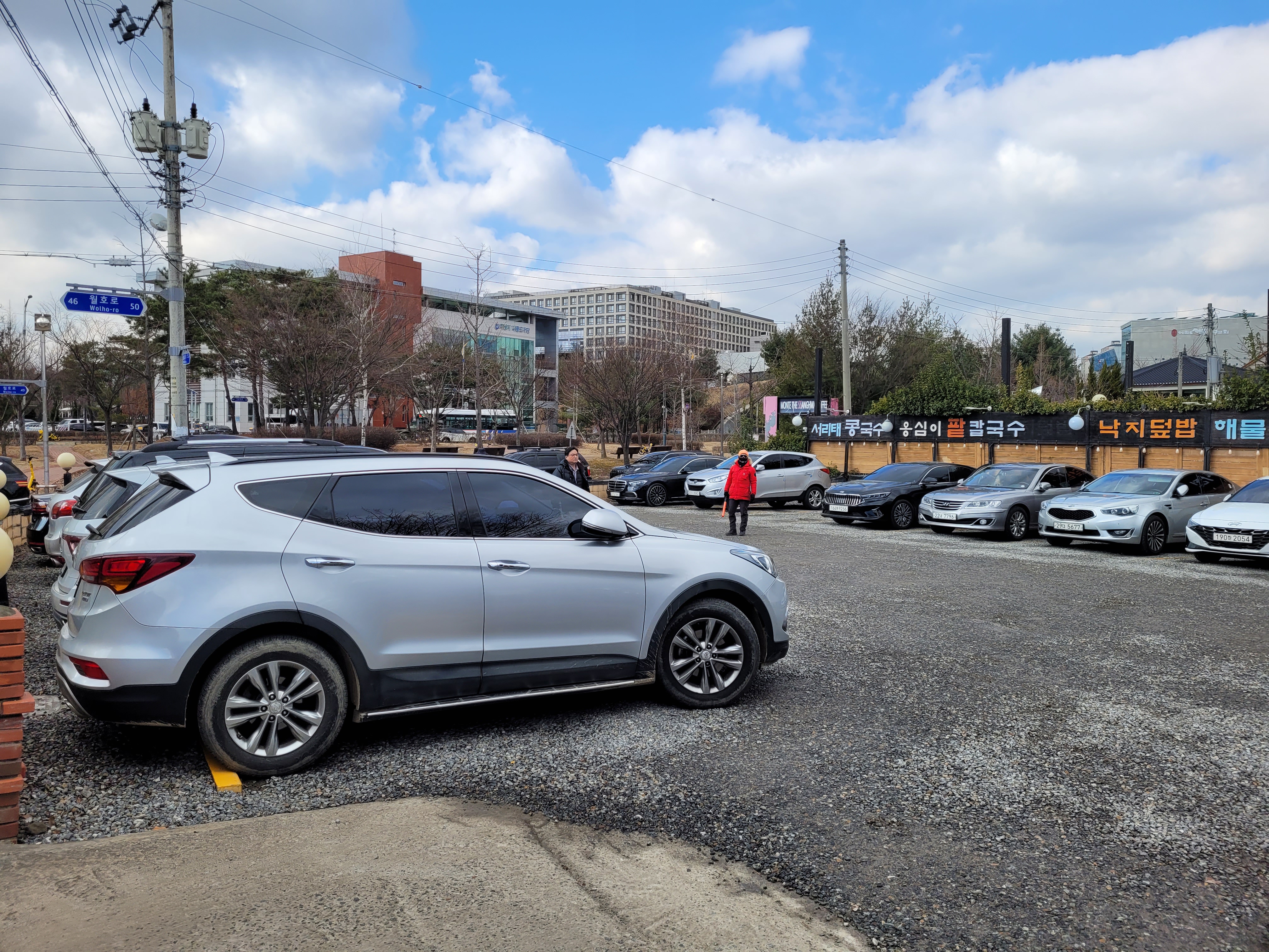 금요일 점심시간(11시40분 쯤)에 방문했는데 주차된 차가 꽤 많습니다. 주차장이 꽤 넓습니다.