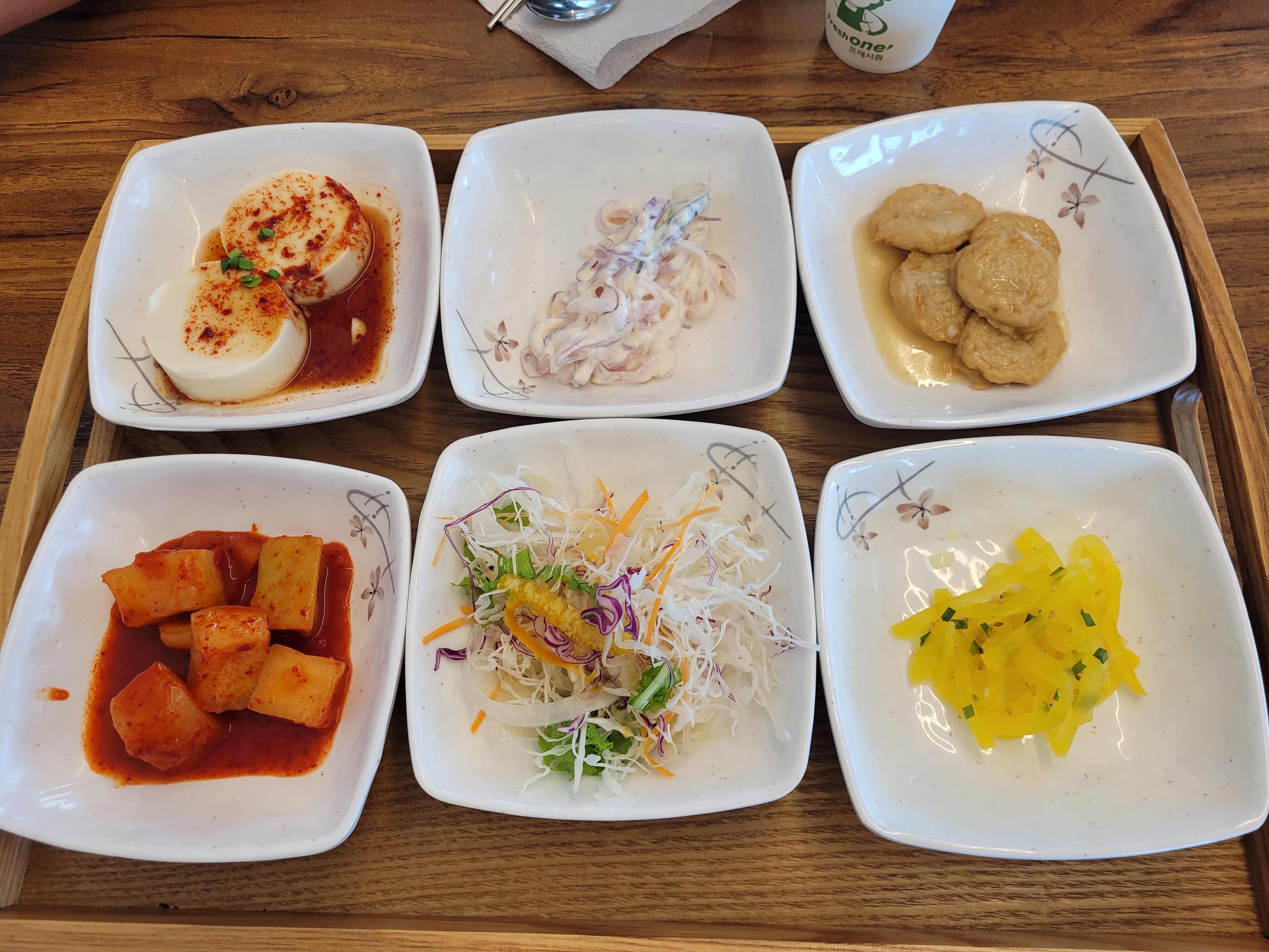 자리에 앉아 주문한 미역국이 나왔습니다. 정갈한 밑반찬과 함께 뚝배기에서 보글보글 끓는 채로 나온 미역국은 보기만 해도 군침이 돌았는데요.