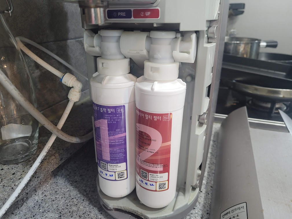 저희 집 정수기(모델명: WD501)도 렌탈 기간이 2년 전에 끝나서, 매년 이맘때가 되면 제가 직접 필터를 교체하고 있답니다. 서비스 기사님을 부르면 출장비와 인건비가 추가되지만, 셀프로 교체하면 1년에 한 번, 필터 값만으로 깨끗한 물을 마실 수 있어요!