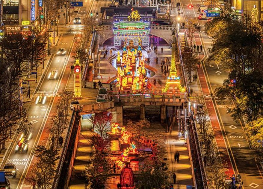 - 청계천 산책로에는 한지등과 LED 조형물이 길게 이어져, 찬바람 부는 개천이 따뜻한 빛의 강처럼 느껴져요.