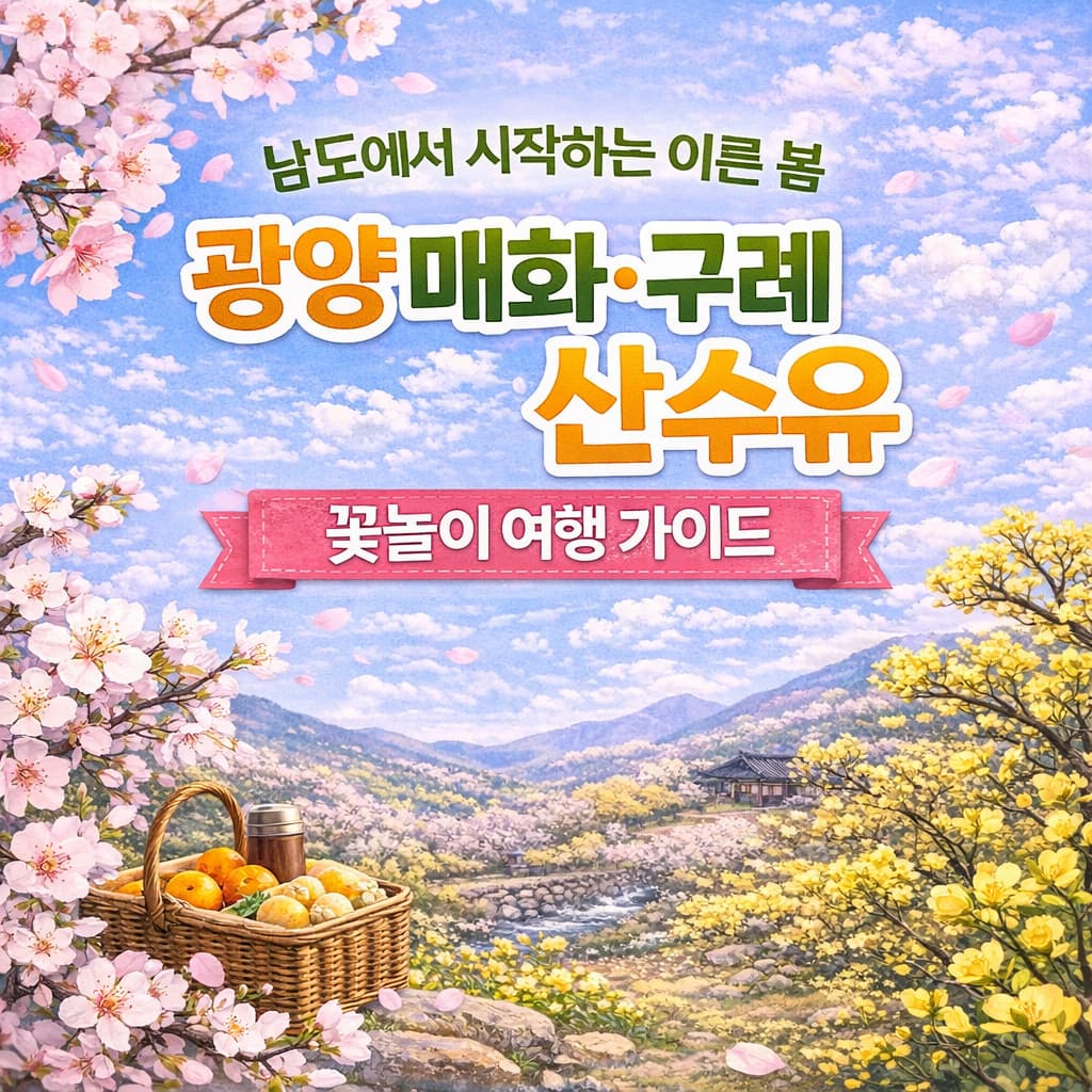 2026년 봄, 전국에서 가장 먼저 만나는 남도의 봄꽃 여행을 정리했습니다. 광양 매화축제와 구례 산수유꽃 축제를 중심으로 개화 시기와 여행 포인트를 안내합니다.