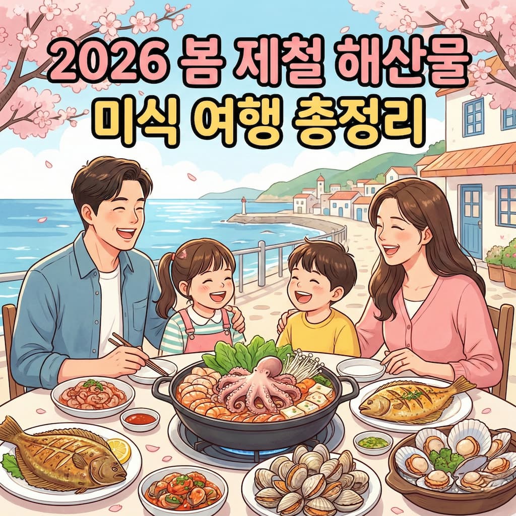 2026년 봄 제철을 맞은 수도권 근교 해산물 여행지를 한눈에 정리했습니다. 아이와 부모님 모두 만족할 수 있는 지역별 대표 해산물과 체험, 맛집 기준으로 구성했습니다.