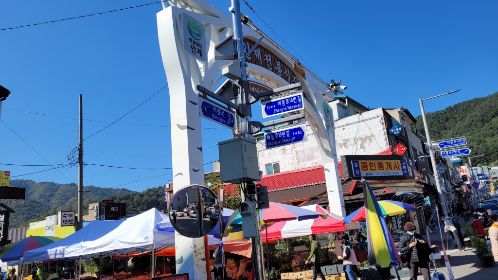 강원도 인제에는 지역 주민들이 이용하는 전통 5일장이 열립니다. 시장 규모가 아주 큰 편은 아니지만, 장날이 되면 시장 주변 도로에 좌판이 늘어서며 시골 장터 특유의 분위기를 느낄 수 있습니다.