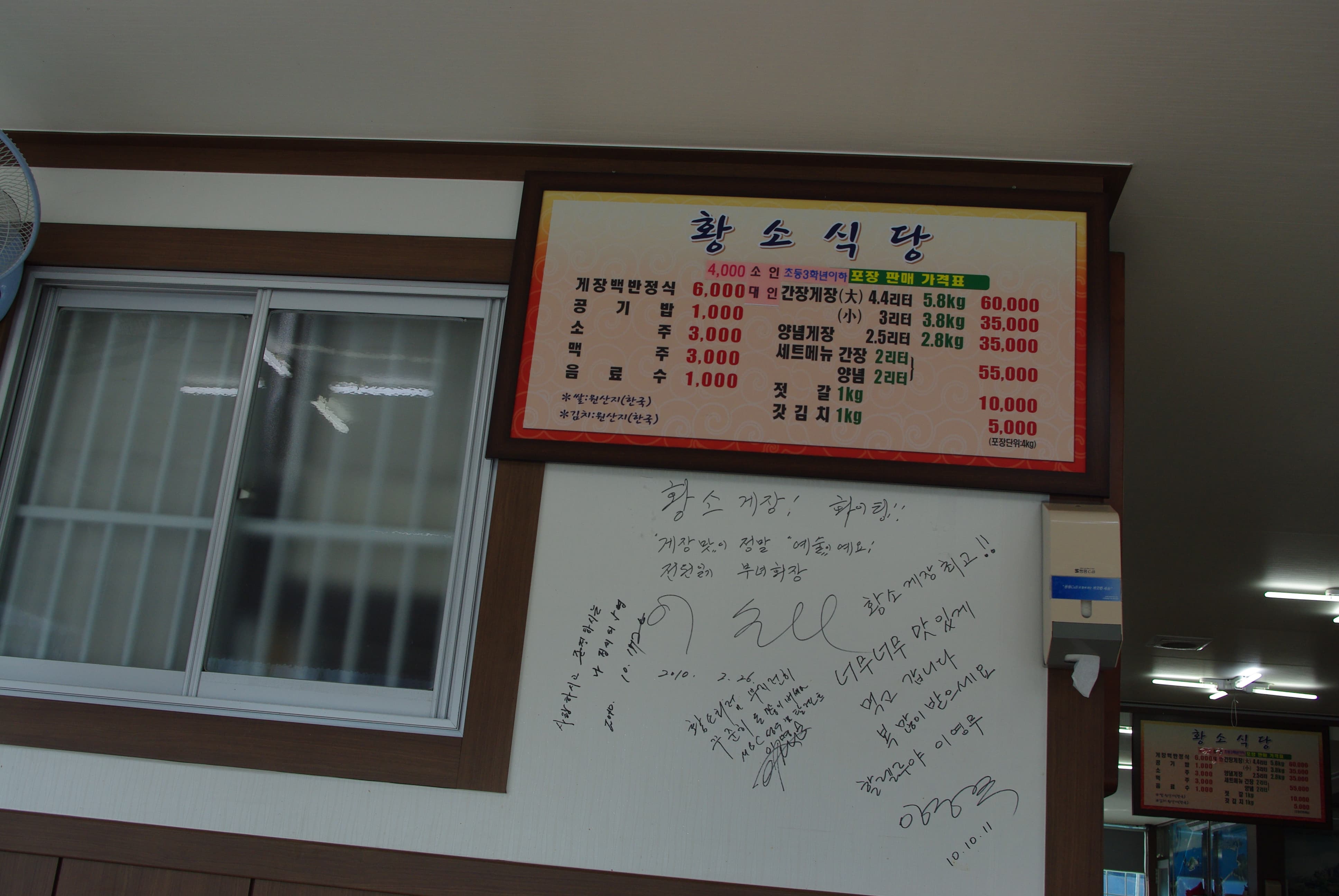 펜션 사장님이 추천해주신 게장 백반 식당을 방문하였습니다. 이름은 황소식당.