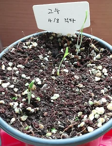 반응형 2017/04/201 [베란다텃밭] 고수 바로심기 발아 4월8일 물에 불리지 않고 파종한 고수가 4월19일경 고개를 내밀었다. 열흘 가량 걸렸는데 생각보다 빨리 발아되었다. 불리나 안불리나 수분만 충분하면 크게 차이가 없는것 같다. 발아에는 온도 충분한 수분이 중요하다. 한달이 넘은 고수들은 창 방향으로 자라고 있다. 비료보다 더 중요한 건 광량이다. 홍천에서 고수를 잔뜩 수확해와서 수확 시기를 미뤄야겠다. 차나무 씨앗과 레몬 씨앗은 언제쯤 발아될까? 2017. 4. 20. 이전 1 다음 반응형